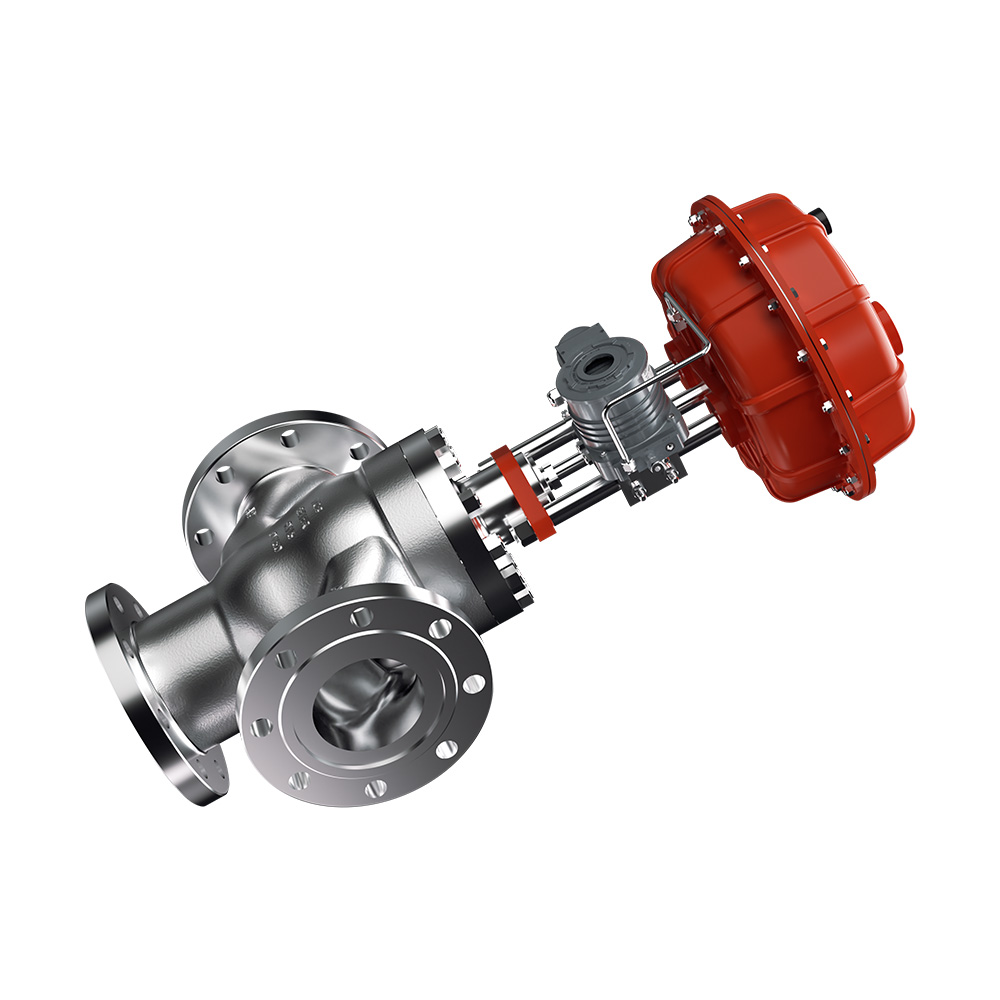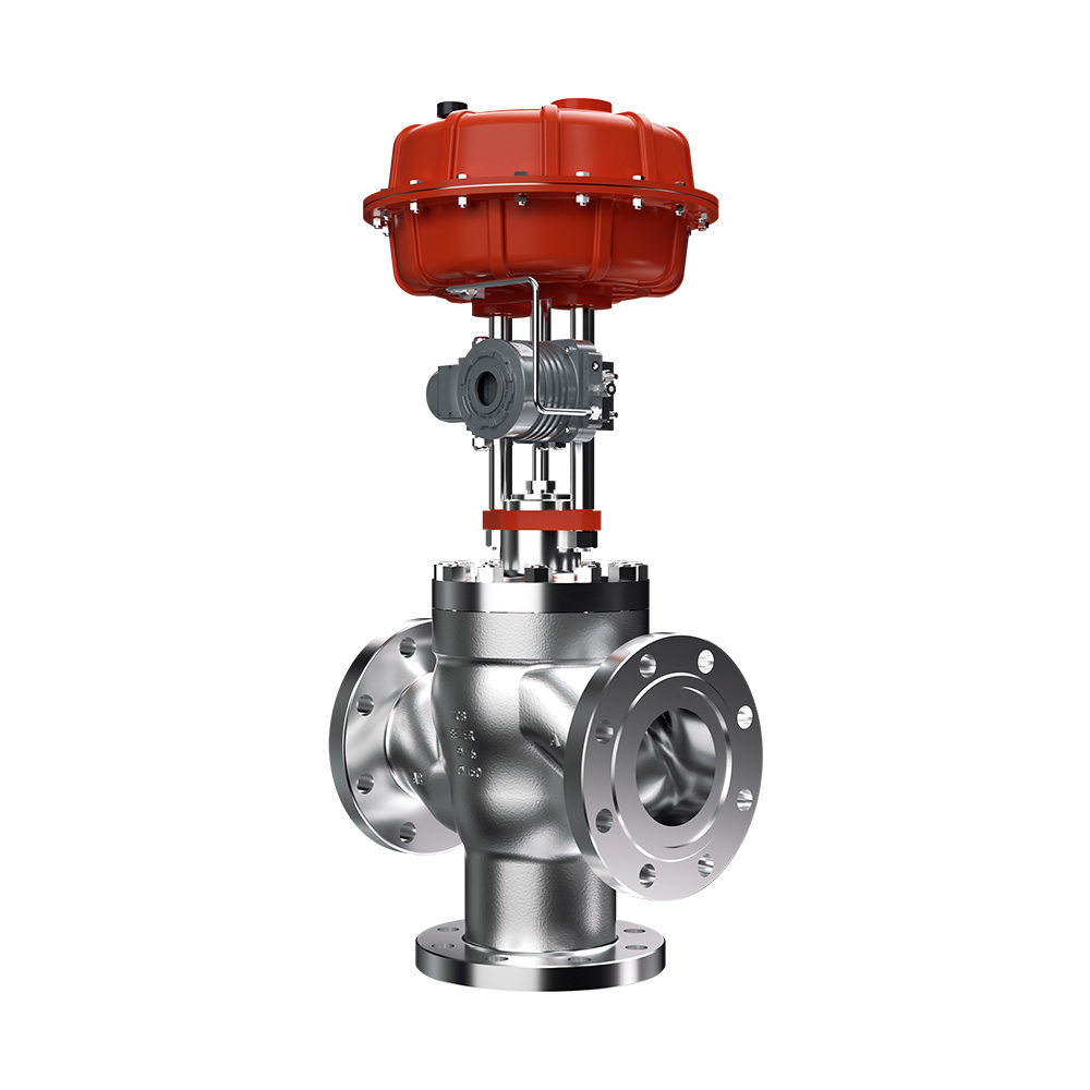 L23100直行程三通合/分流控制阀采用双阀心与阀座导向结构,针对几条流路介质聚集与分开进 行调节控制,两路流道进,一路流道出称为三通合流,相反 ,一路流道进,两路流道出 称为分流 标准合/分流路设计为不平衡式双座内件结构。同时可采用平衡内件形式,有效降低介质压差造成 的不平衡力。改变节流面面积大小,从而控制由任意流路合流或分流构成的均分流量的调节或截止 功能也可根据工况采用降噪、防气蚀等特殊阀笼内件。 (具体内件说明请参阅相关内件结构控制阀)