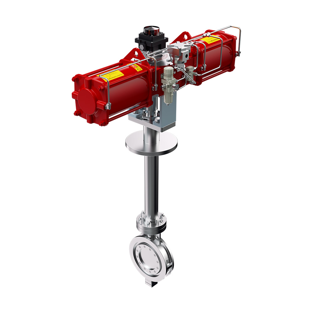 GYR-71030系列低温蝶阀以采用R-71730系列高性能蝶阀与R-71800系列三偏心硬密封蝶阀两种内件结构为基础,通过采用Solidwork三维模型优化设计,针对深冷工况下材料变化的有效控制,通过选用优质的合金材质与有效的处理,满足在深冷工况的稳定表现。具有优良的阀座密封性。伸长型上阀盖的采用接合阀轴两重密封,保证了密封填料在低温下的长期稳定性。此系列产品广泛使用液化天然气与空分行业等深冷流体过程的控制。
